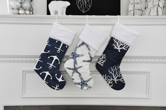 Beach Christmas Stocking Coastal Christmas Stocking Nautical Etsy
