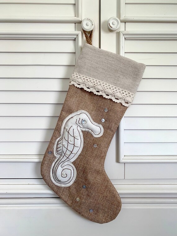 Seahorse Coastal Christmas Stocking Beach House Holiday Decor Etsy