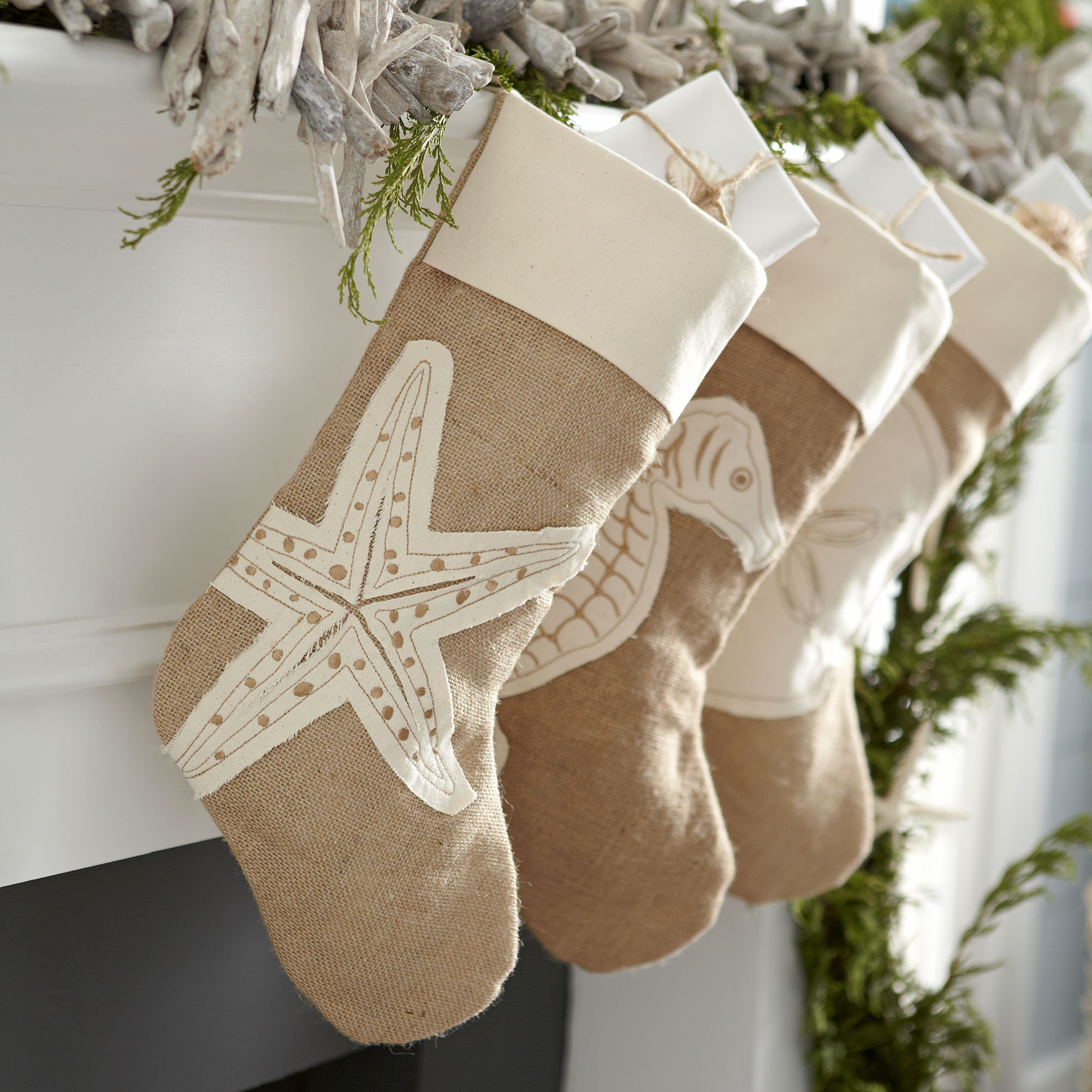 Beachy Burlap Christmas Stocking Set Coastal Christmas Decor