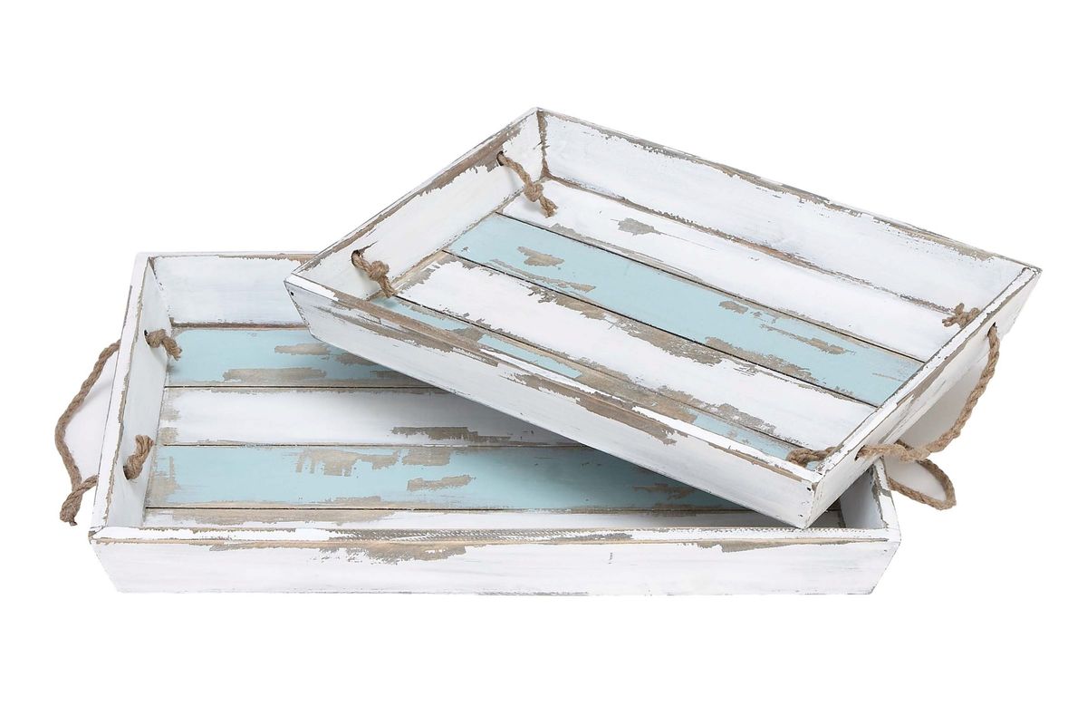 Coastal Living Wood Striped Serving Trays In Distressed White