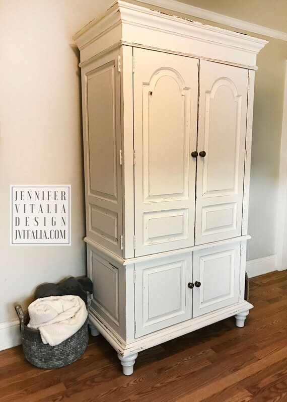 Vintage Farmhouse Coastal Distressed Armoires Handpainted Etsy