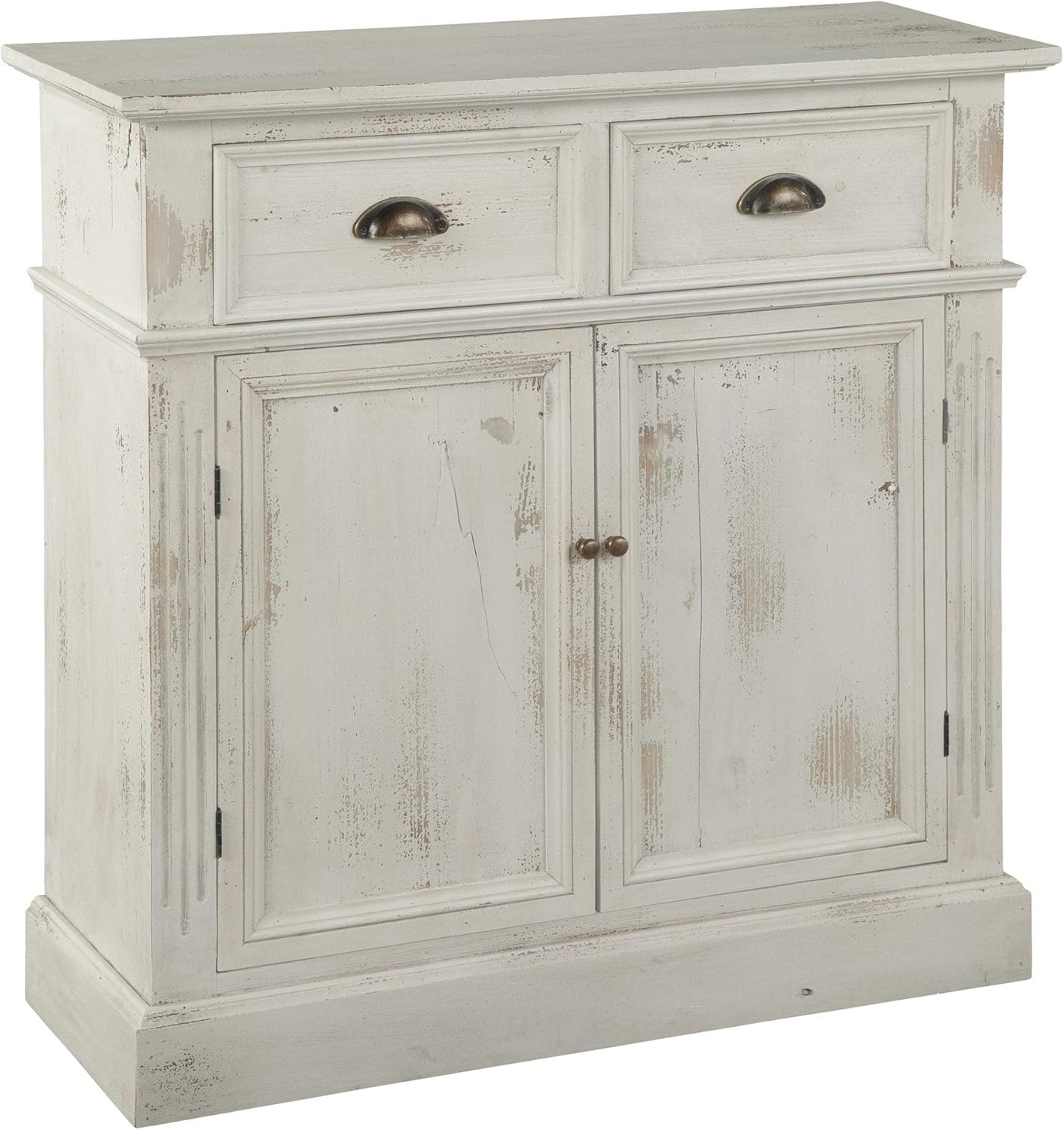 Antique White Distressed Coastal Farmhouse Style Storage Cabinet