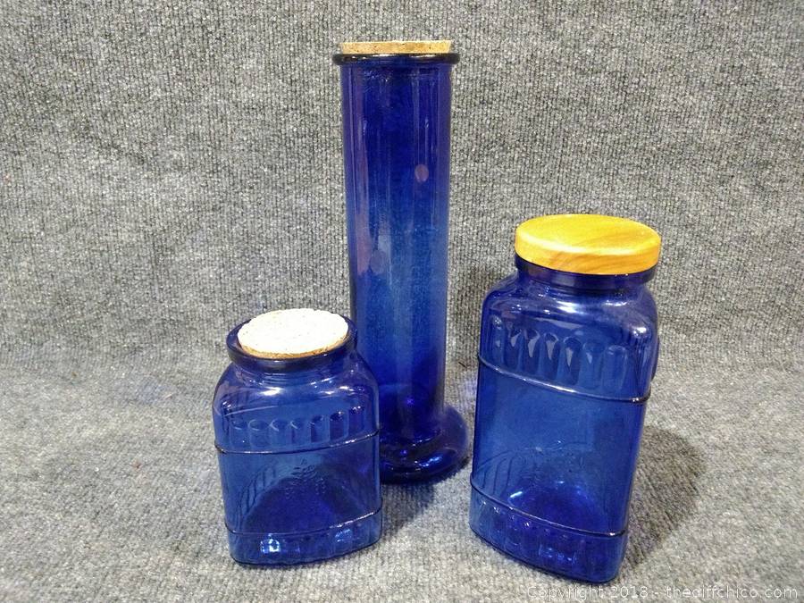 Cobalt Blue Canisters Vacuum Sealed Jars 8 10 13 Tall Vacuum
