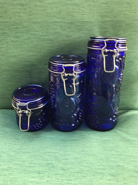 Cobalt Blue Glass Canister Set Fruit By Wrappedroundmyfinger