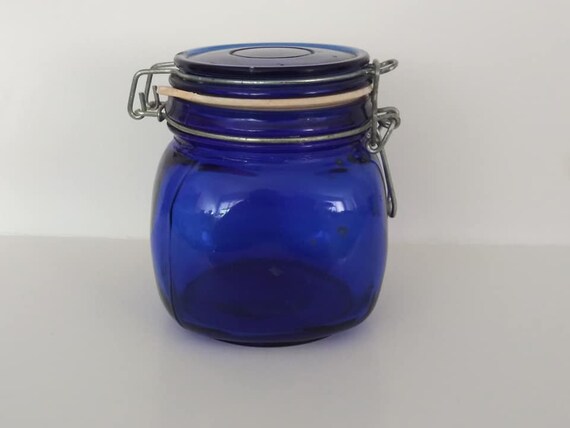 Cobalt Blue Glass Canister French Style Fruit Jar W Seal