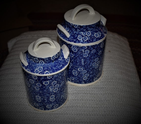 Vintage Cobalt Blue Calico Ceramic Kitchen Canisters Made In Etsy