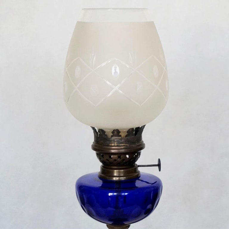 Antique Cobalt Blue Glass Oil Lamp With Milk Glass Base Oil
