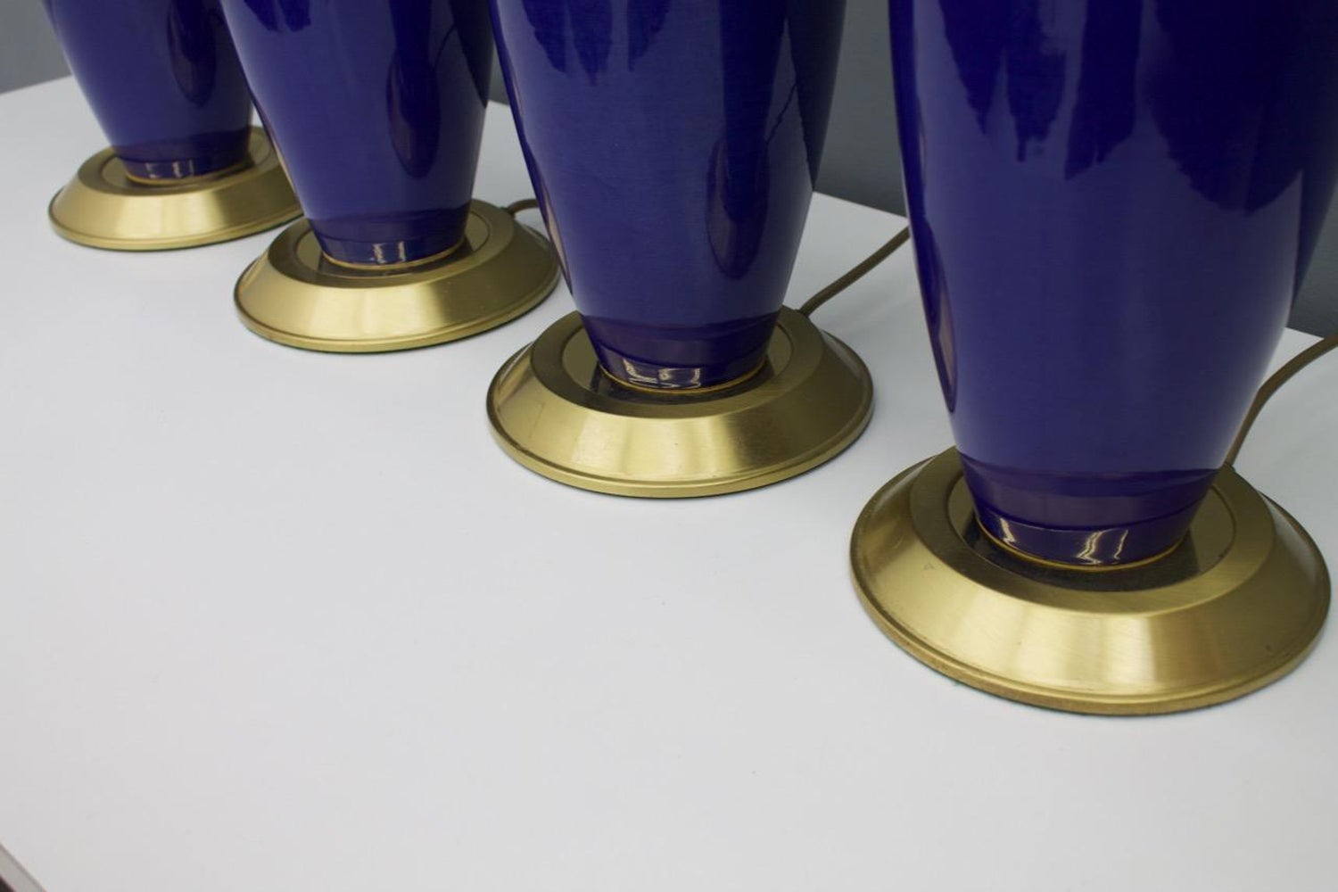 Three Cobalt Blue Glass Table Lamps With Brass Base 1970s