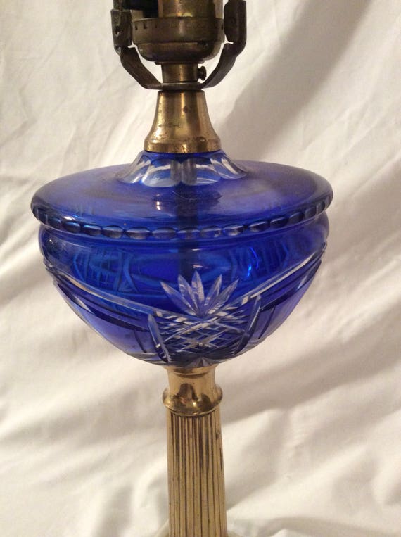 Bohemian Czechoslovakian Cobalt Blue Etched Glass Lamp Etsy