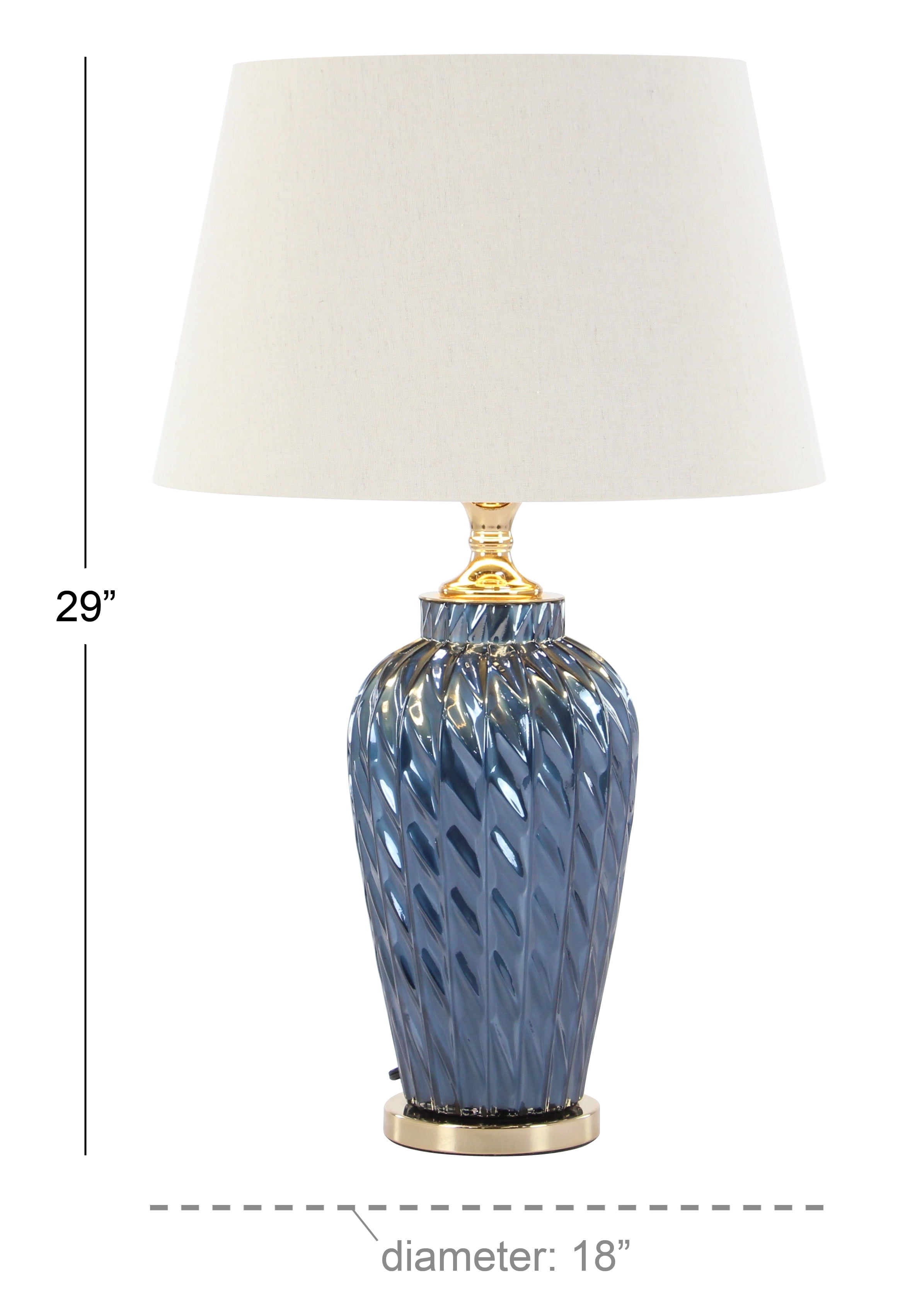 Decmode Modern Glass And Metal Textured Urn Table Lamp Blue
