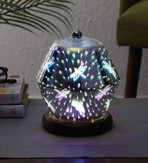 Buy Blue Glass Shade Table Lamp With Brown Base By Tunehome Online