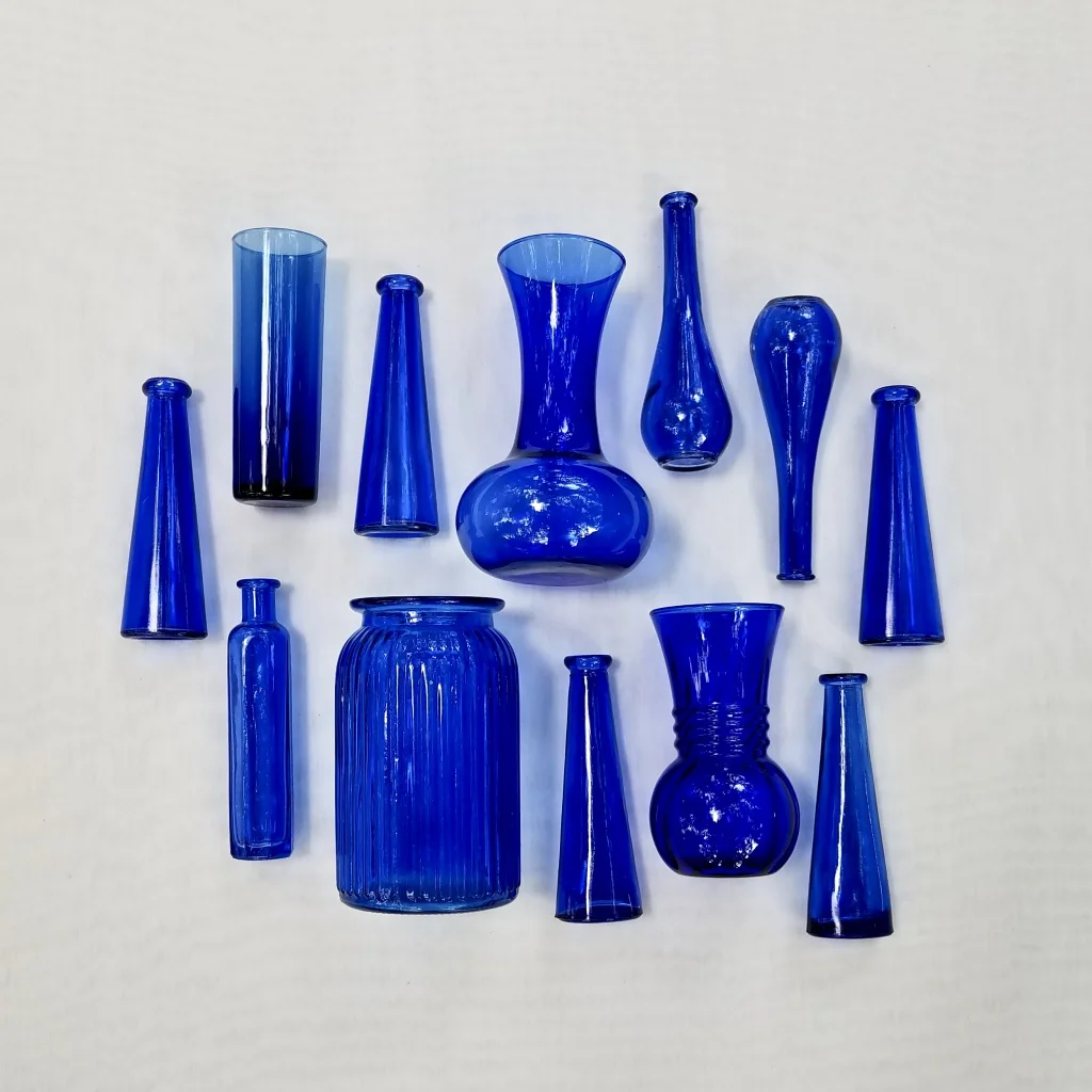 Cobalt Blue Glass Vases Lot Collection Of Vintage Blue Glass Bud