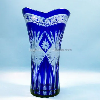 Best Selling Stock Cobalt Blue Bohemian Czech Crystal Glass Vase