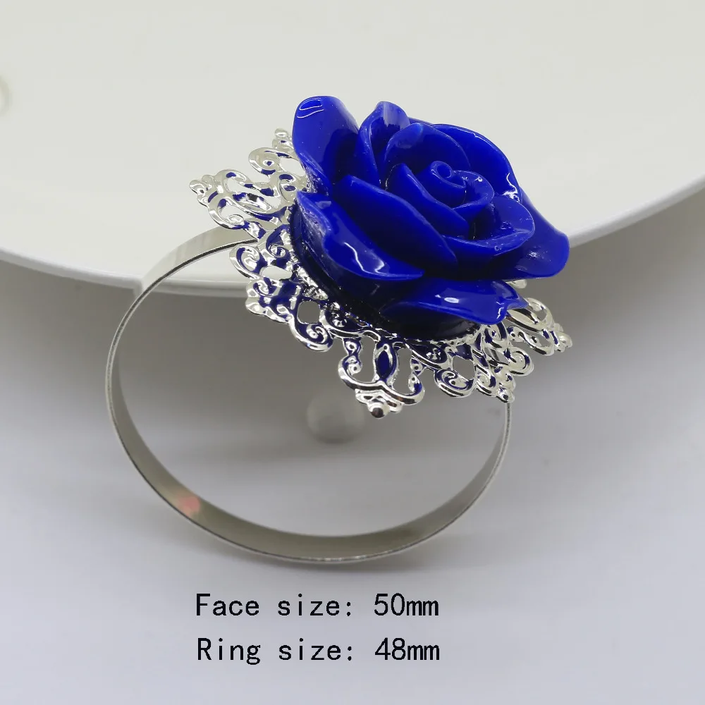 New Blue Roses Napkin Ring Silver Decorative Iron Napkin Rings