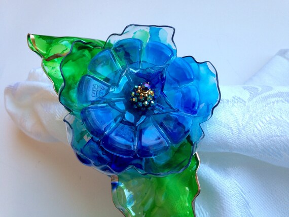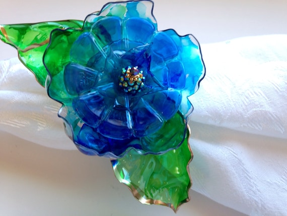 Blue Napkin Ring Set Cobalt Blue Turquoise Teal Flowers Etsy