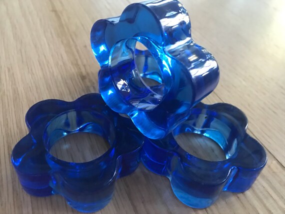 Lucite Napkin Rings Cobalt Blue Flower Shape Set Of Four Etsy