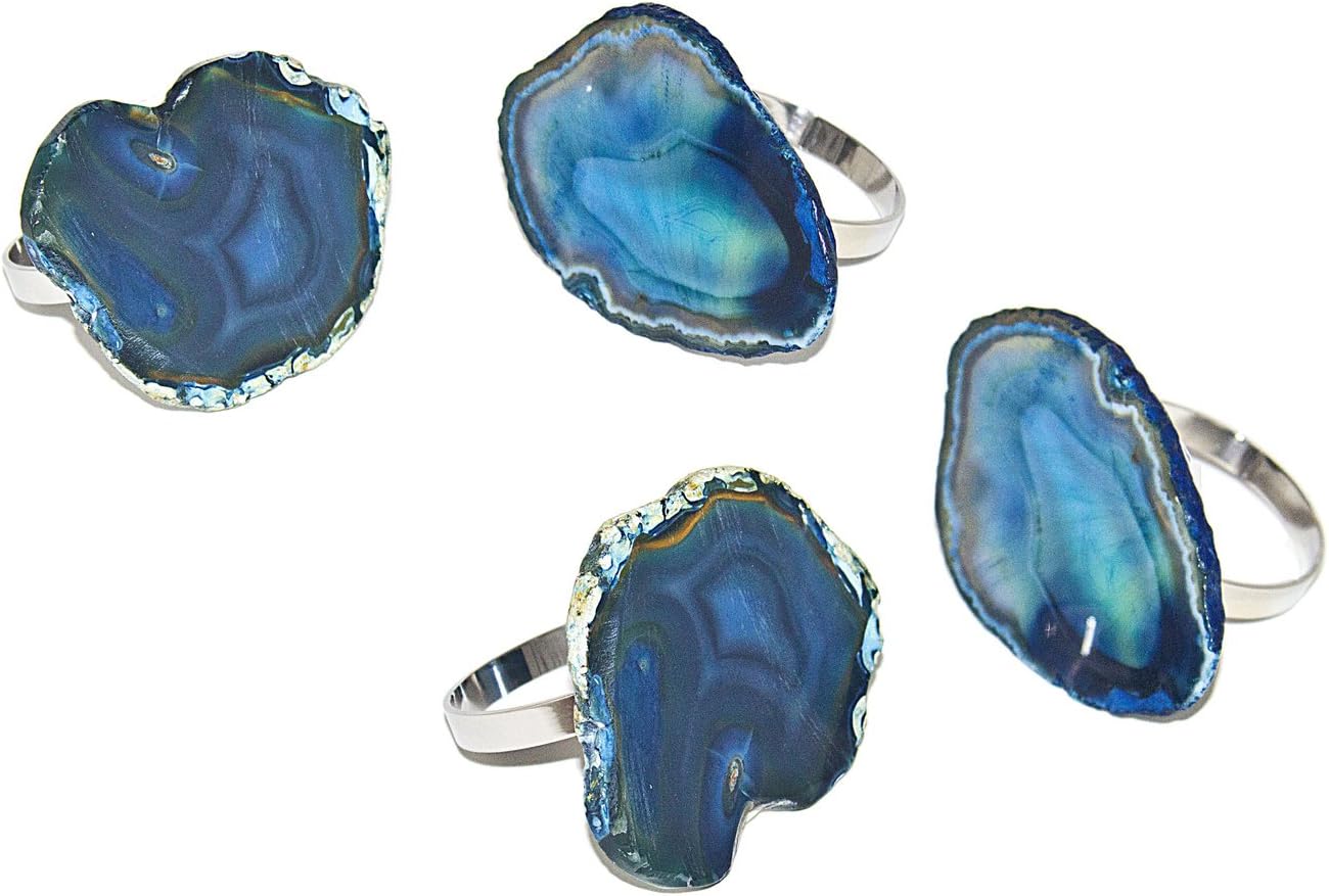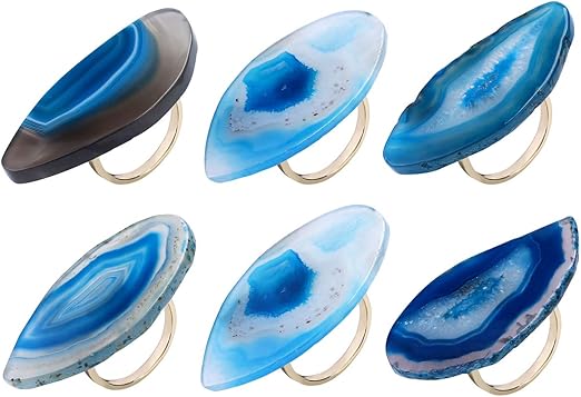 Blue Shade Agate Stone Napkin Rings Napkin Holder Tissue