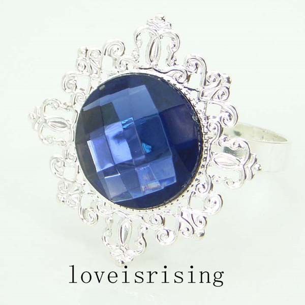 Navy Blue Acrylic Stone Silver Plated Napkin Rings Napkin