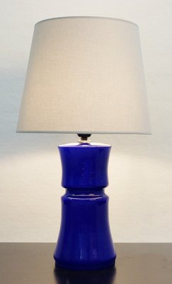 Danish Midcentury Palshus Tall Cobalt Blue Table Lamp With