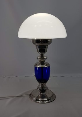 Vintage Silver Table Lamp With Cobalt Blue Glass Body For Sale At