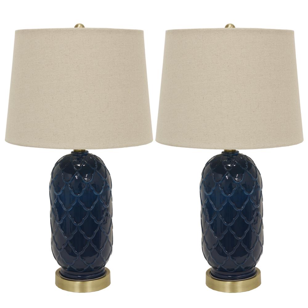 Decor Therapy Anabelle 27 In Indigo Blue Table Lamp With Linen