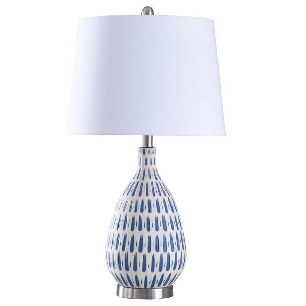 Stylecraft 28 In Off White Blue Table Lamp With Off White