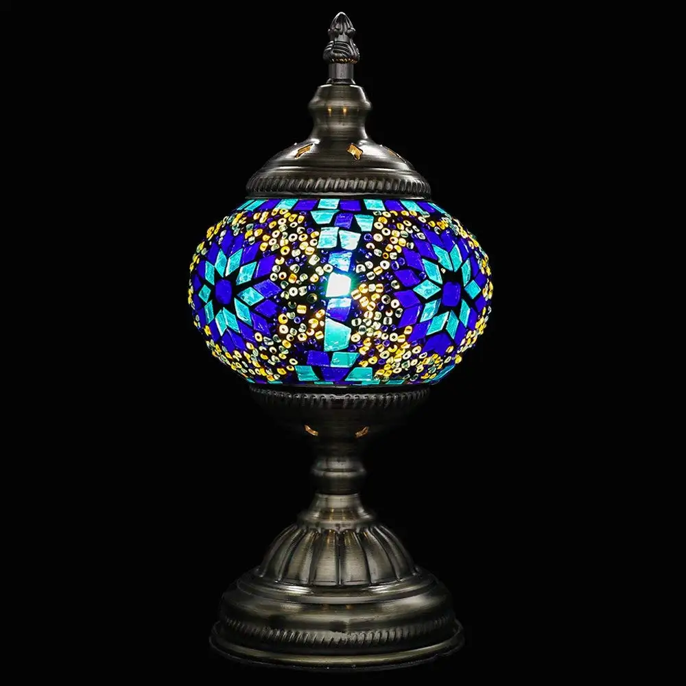 Fumat Tiffany Table Lamp Led E27 Stained Glass Bedroom Blue Table