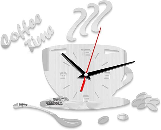 Amazon Com Gosear Wall Clock Wall Clock Decorative Fashion Diy Coffee Cup Shape Hanging Clocks Acrylic Wall Sticker For Home Living Room Coffee Shop Decorations Silver Home Kitchen