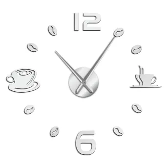 Modern Diy Home Decor Large Coffee Cup Stickers Kitchen Wall Clocks Silent Clock Stickers Silver Shopee Indonesia
