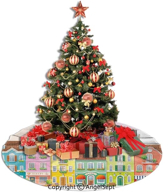 Amazon Com Sfeatrutmat Christmas Tree Skirt Vintage Retro Houses
