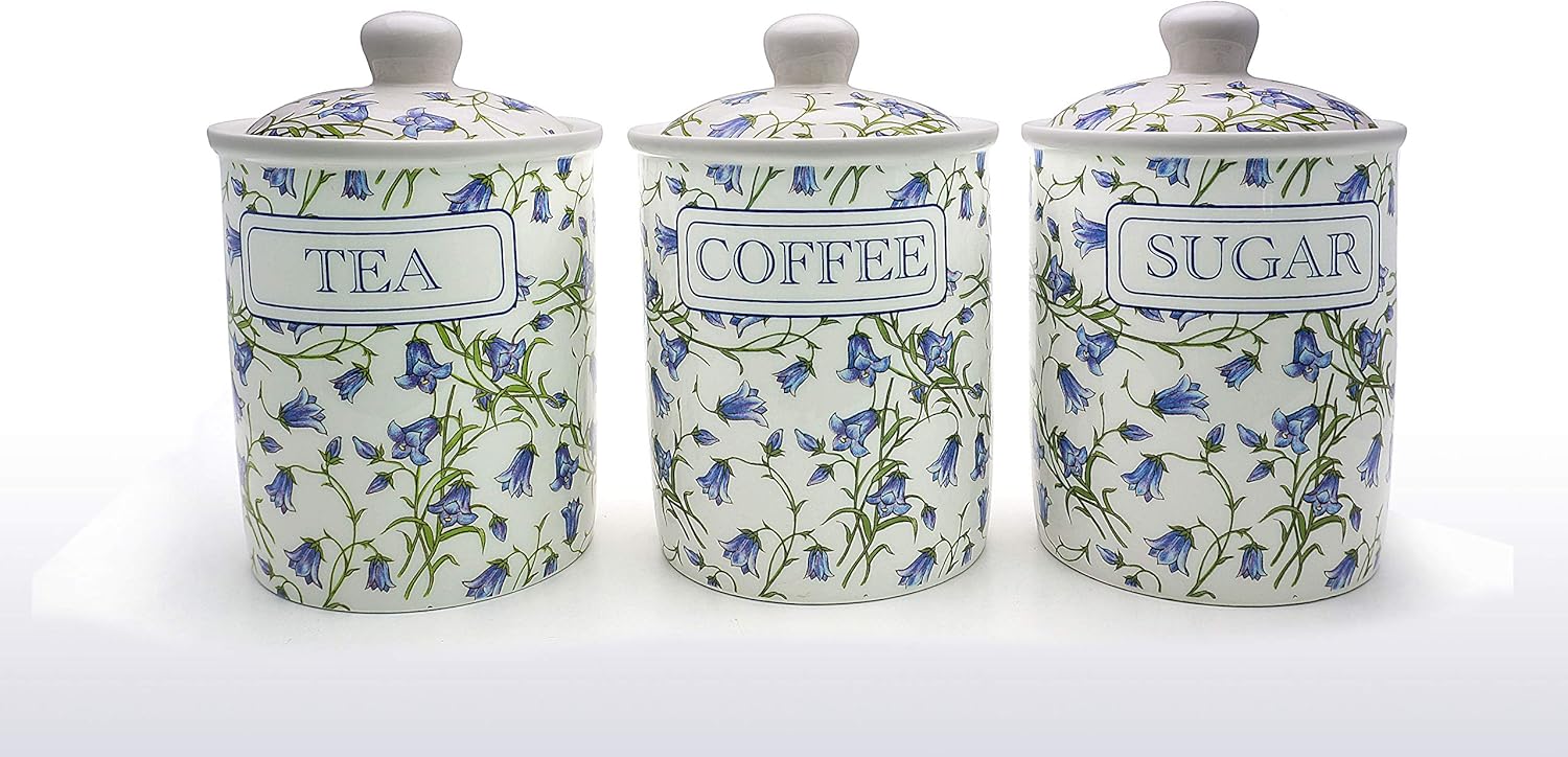 Bluebell Fine China Tea Coffee Sugar Canisters Jars Free Uk