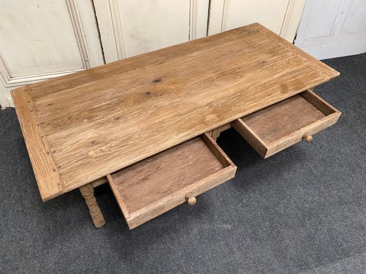 Large Antique French Bleached Oak Farmhouse Coffee Table For Sale