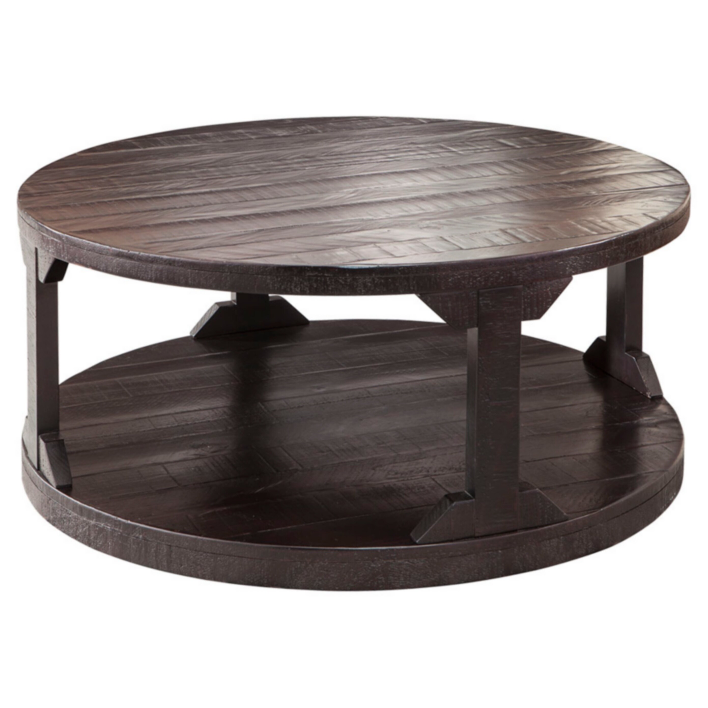 Ashley Shofern Round Cocktail Table Rustic Brown Finish