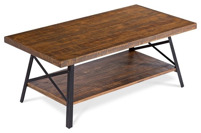 Boyel Living Rustic Brown Industrial Solid Wood And Steel Coffee