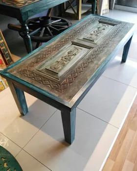 Indian Antique Handcarved Haveli Door Table Unique Style Coffee