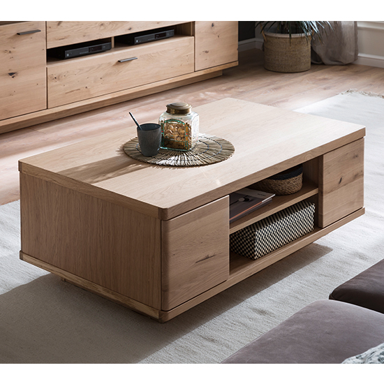 Barcelona Wooden Coffee Table In Planked Oak With 2 Doors
