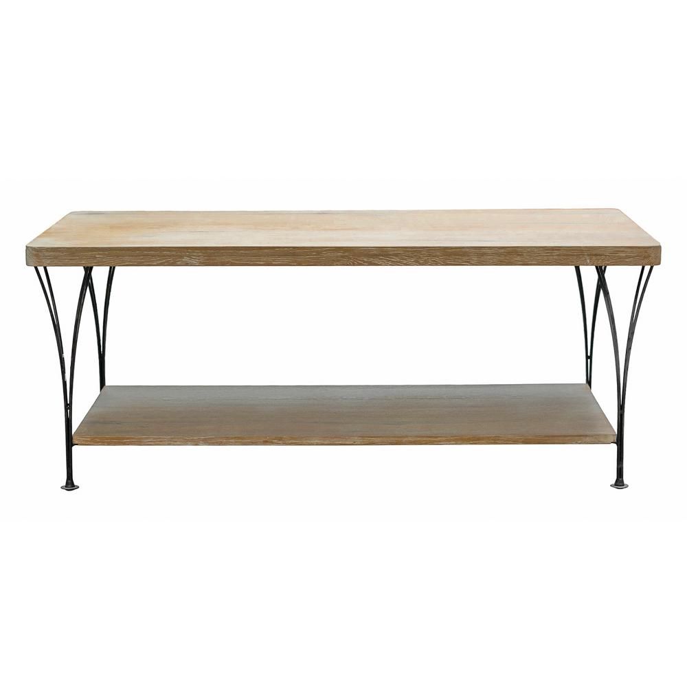 Black Metal Frame Coffee Table With Oak Finish Wood Top And Shelf