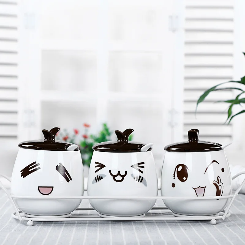 3pcs Set Cartoon Ceramic Spice Jar Kitchen Supplies Oil Vinegar