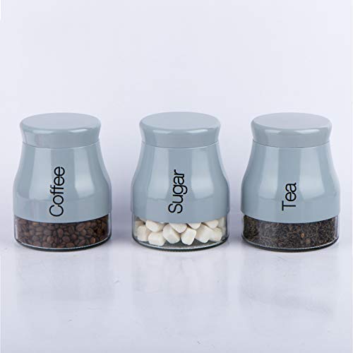 Gr8 Home Grey Set Of 3 Kitchen Storage Canisters Tea Coffee