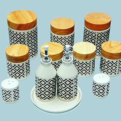 Buy Ez Life Waves Sugar Tea Coffee 3 Jars Wooden Tray Set