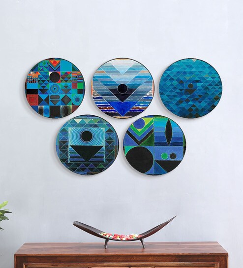 Buy Blue Ceramic Neelkanth Hand Painted Wall Decor Plates Set Of