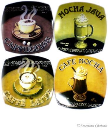 Retro 4 Coffee Decor Plates Four Cafe Salad Dessert Plate Set
